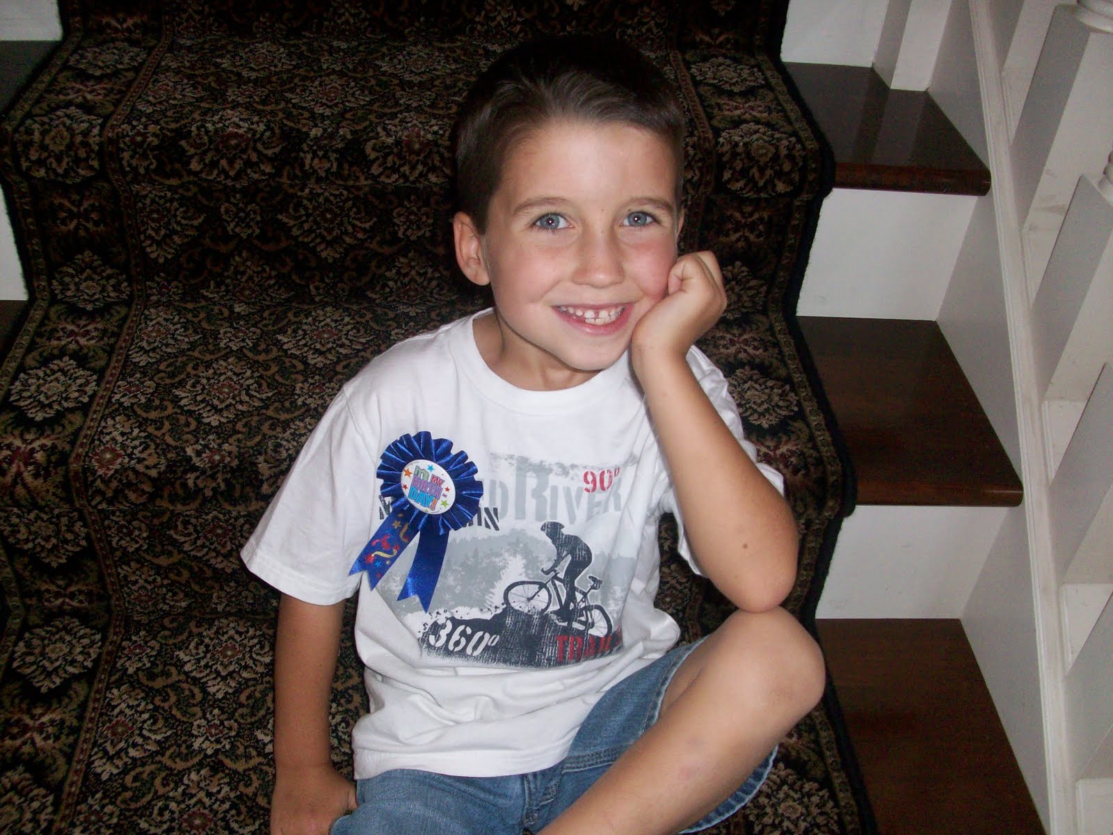 Another year older!!! Such big stuff now, I mean you are 6!!! You are in Kindergarten, and when I pick you up, your feet reach my knees now!! I would imagine 10 more pounds and I wont even be able to pick you up anymore, but you can still sit in mommy's lap, for as long as you want!! You are my firstborn, and I learned about this whole mommy thing with you. It was hard to become a mommy, and you were such a fussy baby!! ;) It was all worth it though. You are my boy. I love you with all of my heart and soul, I have a very soft spot for you. You are such a good boy!! So, well behaved and still have a tender heart. You still love animals, and you are SOOO much like your daddy.
